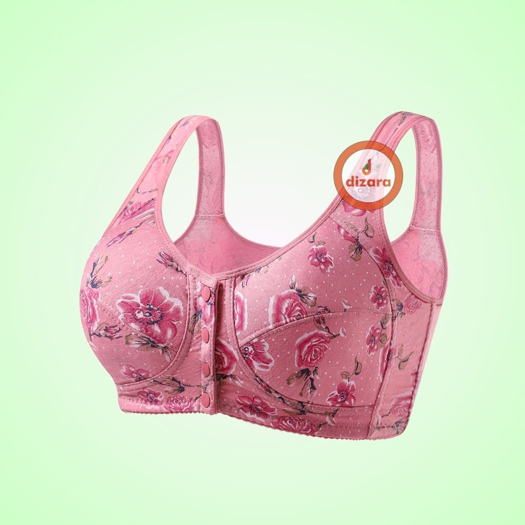 Dizara Chinese Flower Print Cotton Pink Bra FOR WOMAN